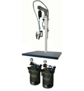 Adatta per colle neoprene, PU, anche con attivatore (se con pompa ad ingranaggi) ed in generale tutte le colle a base solvente. Versione standard su basamento con pedale. Disponibile il variatore elettronico di velocità. A richiesta è collegabile ai contenitori mod. 2C per alimentazione senza travaso.